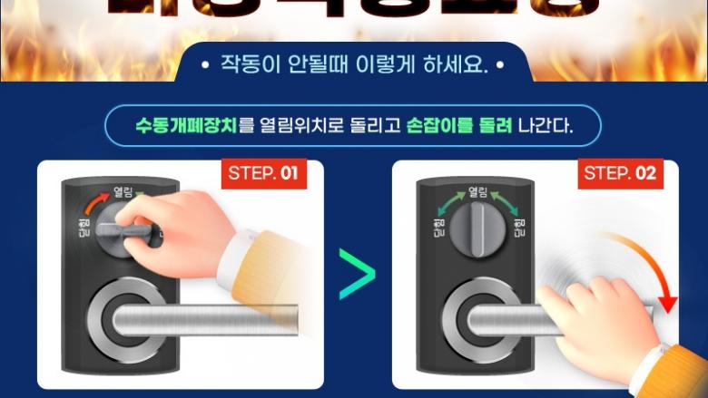 경기도소방재난본부는 화재 시 신속한 대피를 위해 대부분의 아파트에서 사용하는 도어록 수동개방 요령을 반드시 숙지해 달라고 27일 밝혔다. 지난 2020년부터 올해 6월까지...
