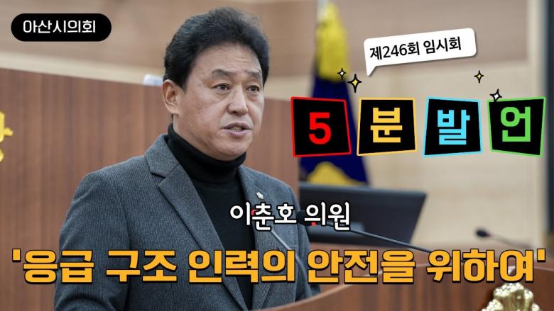 아산시의회 이춘호 의원(마선거구)이 11월 27일 제246회 아산시의회 제2차 정례회 제1차 본회의에서 응급 구조인력의 안전을 위해 긴급차량 우선신호시스템 구축의 필요성에 대해 5...