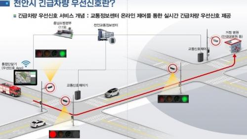 ▲제공 : 천안시청내년부터 천안시 관내 소방차, 구급차 등 긴급차량은 교통신호 제약 없이 신속하게 목적지까지 이동할 수 있게 된다.천안시는 긴급...