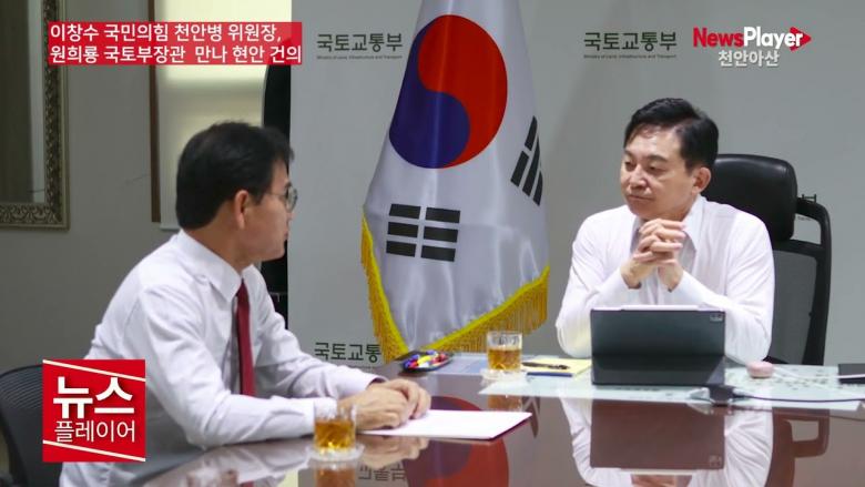 이창수 국민의힘 천안병 당협위원장(중앙당 인권위원장)은 13일 오전 서울 국토교통부 사무소에서 원희룡 국토부 장관을 만나, 천안시 발전방향과 성장전략에 대해 논의했다. 이창수 위원장은 이날 ▲GTX-C 노선의 천안-아산 연장 ▲천안 외곽순환도로 조기 완성 ▲수도권 전철 연장(천안 청수역 신설) ▲메가시티 지역균형발전 ...