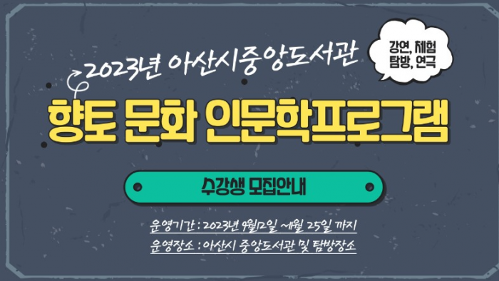 아산시 중앙도서관 ‘향토 문화 인문학프로그램’ 운영