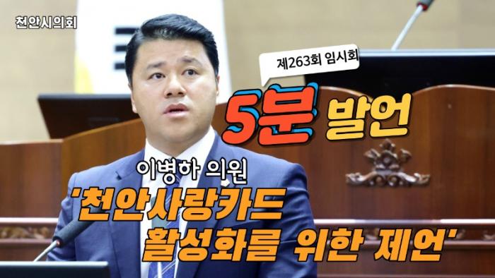 천안시의회 이병하 의원 5분 발언, 천안사랑카드 활성화를 위한 제언