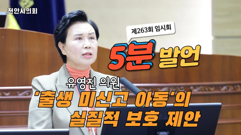 천안시의회 유영진의원 5분발언, '출생 미신고 아동'의 실질적 보호 제안